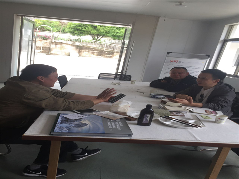 2021.4.13著名書法家劉老師、徽墨大師來公司參觀學(xué)習,了解楮皮紙技藝,如何做出好楮皮紙,挑選好紙。